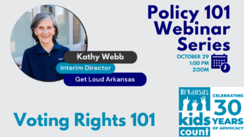This year, the Arkansas Kids Count Coalition is hosting a monthly webinar series, Policy 101, to explore the fundamentals of major policies and programs impacting children and families in Arkansas. The webinars are meant to provide advocates with the essentials around many important topics to help you in advocating for the well-being of Arkansas’s children. We will cover essential components of a program or policy, as well as current issues affecting the policy. We will end by answering your questions.