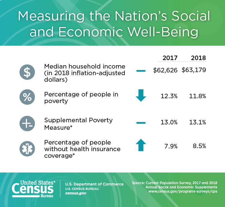 Today’s annual CPS release showed that rising employment and wages continued in 2018 with median household income reaching a record high of $63,179 nationally. The official poverty rate, 11.8, is below pre-recession levels for the first time.